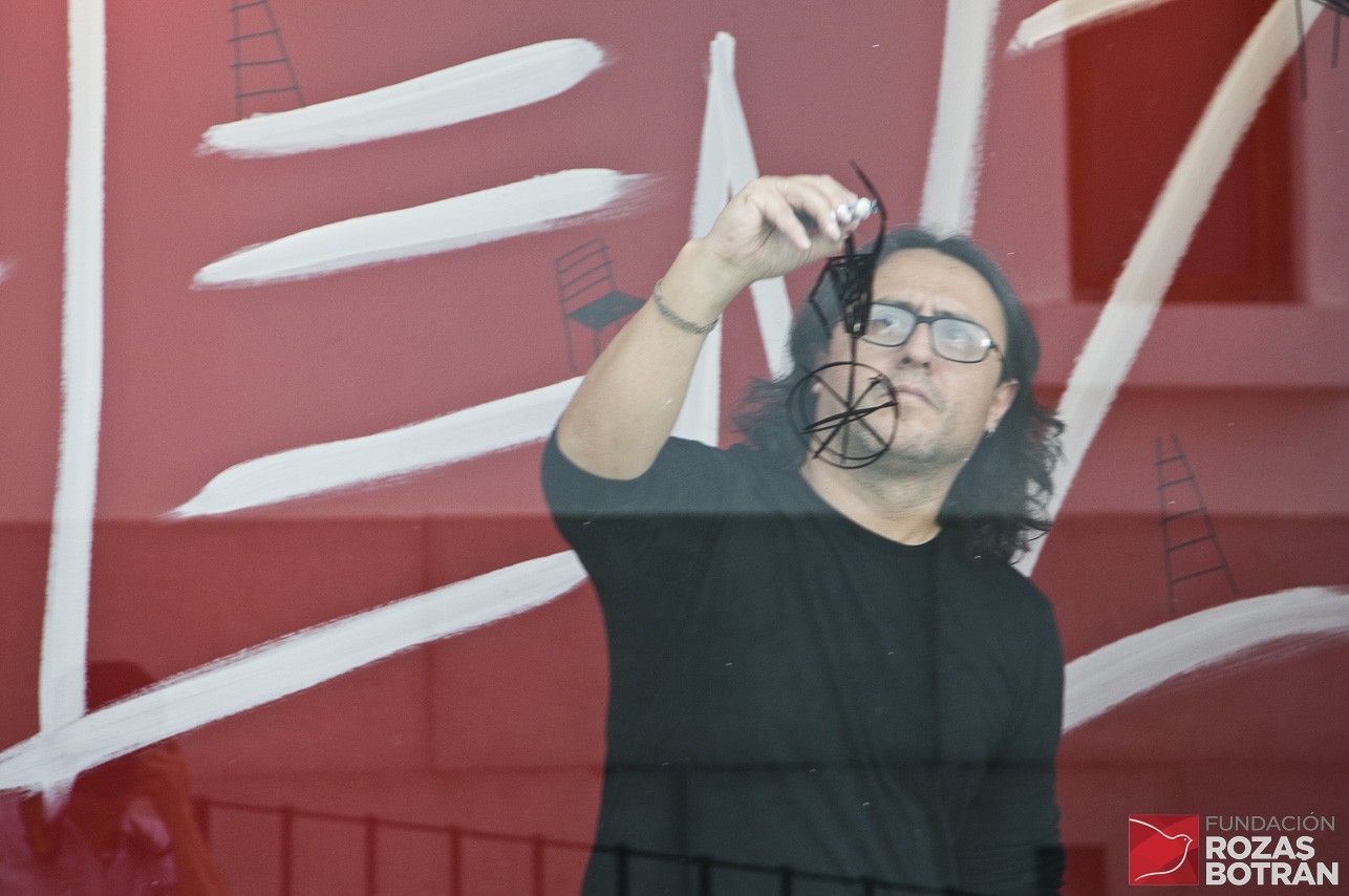 El uso libre de elementos como sillas, escaleras, camas, monociclos, trapecistas, columpios, maquinas… es la manera de contar historias de la vida. Las sillas significan, según el contexto, la espera o la oportunidad. La escalera, el deseo de subir y de seguir creciendo; la cama, el descanso profundo… sin olvidar a los personajes lúdicos que representan el juego y el movimiento singular de los momentos de la vida. En fin, pintar es mi vida.