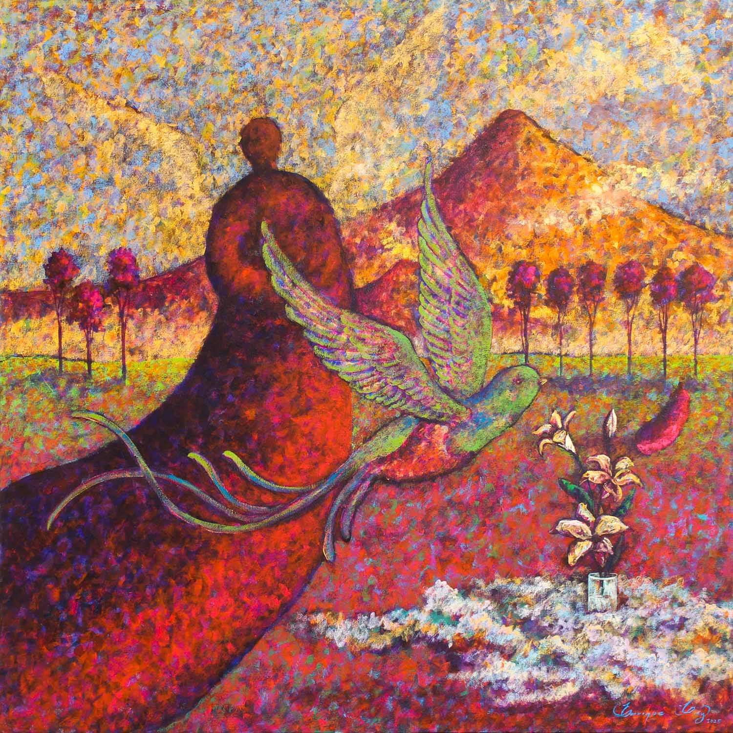 Esta exposición colectiva, también titulada Retorno, presenta obras disponibles de los mismos artistas que participaron en el libro. Más allá de la página impresa, estas piezas prolongan ese diálogo entre imagen y literatura, situándose en un marco contemporáneo donde la trayectoria, la formación y la presencia de cada creador en el ámbito artístico actual consolidan una propuesta que trasciende lo individual para convertirse en una experiencia cultural compartida.