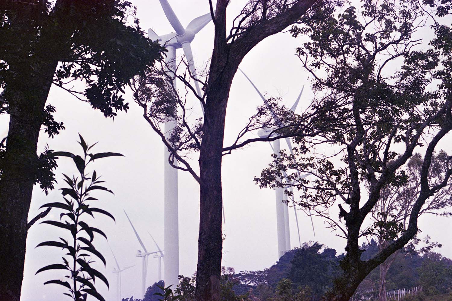Ilustra la sinergia entre tecnología y naturaleza en un intento de coexistencia armónica. Árboles y estructuras de acero, surgidos de la misma tierra, cohabitan para generar electricidad. Esta fotografía simboliza el esfuerzo de Guatemala por integrar energías renovables y construir una red de producción eléctrica sostenible y respetuosa con el medio ambiente.