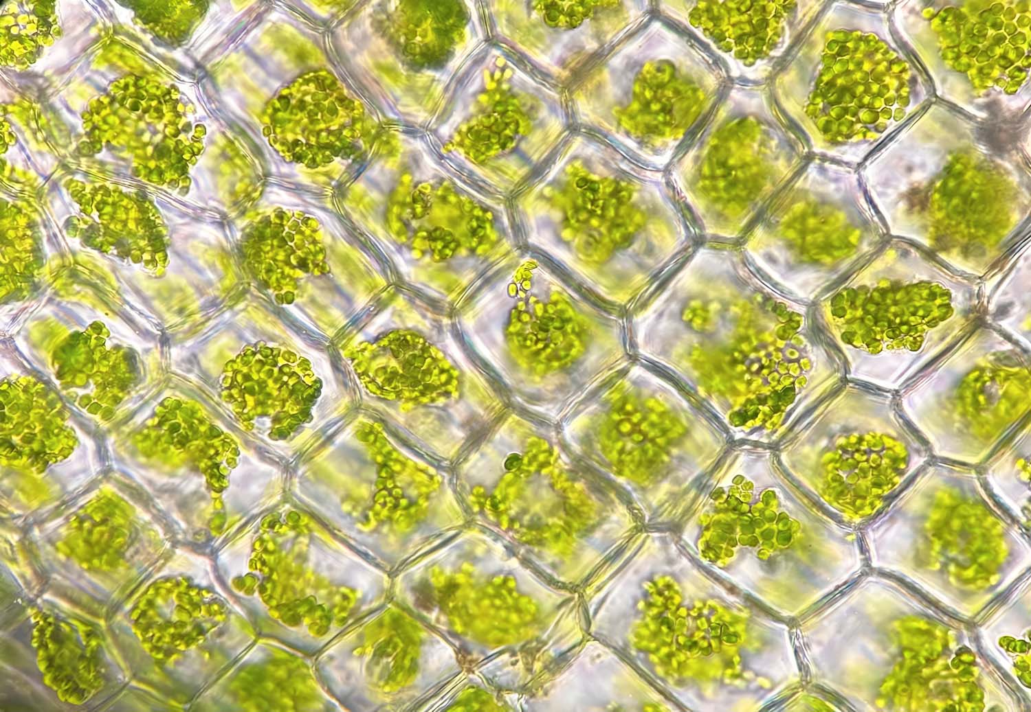 La micrografía de una hoja de Elodea a 40x de aumento revela su epidermis: una red ordenada de células alargadas y cristalinas. Su tono verde suave deja entrever los cloroplastos en su interior. Esta composición natural muestra la belleza de la vida a microescala y cómo cada célula, aunque simple en apariencia, cumple una función.